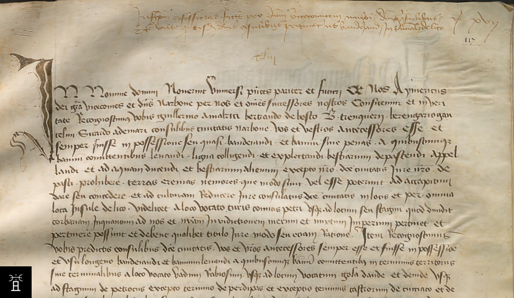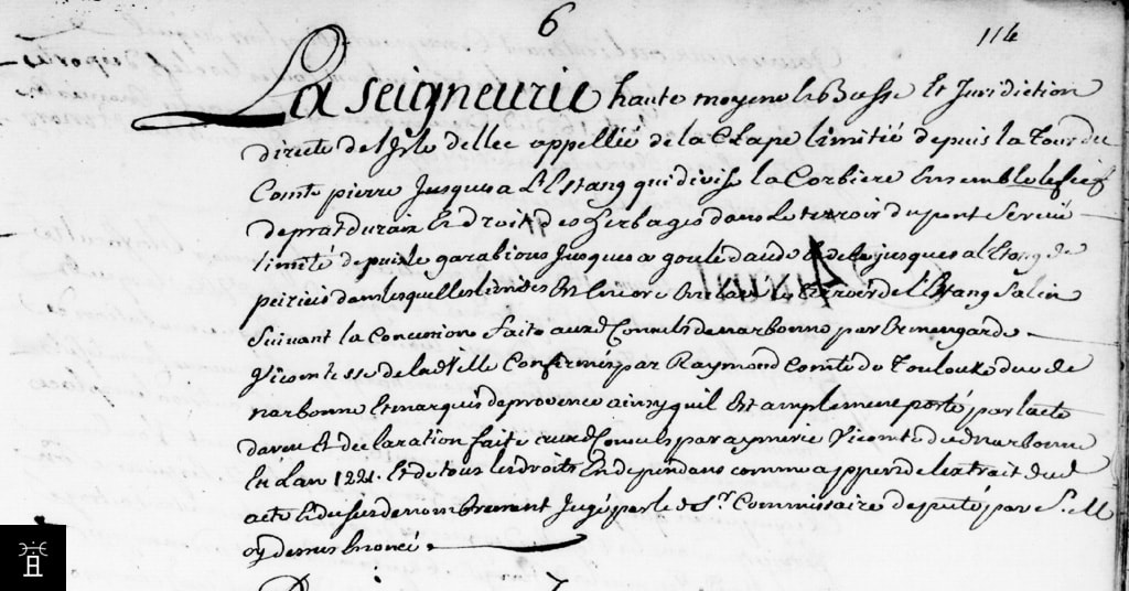 L'enquête débute par l'analyse d'un acte clé daté du 2 des calendes de décembre (30 novembre) 1221, issu des archives de Narbonne. Dans cet acte, le vicomte Aymeric III ne concède pas de nouveaux droits, mais reconnaît aux consuls de la cité de Narbonne des droits d'usage anciens (pâturage, bois).