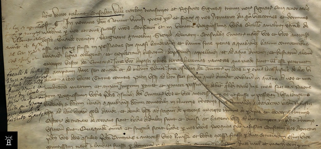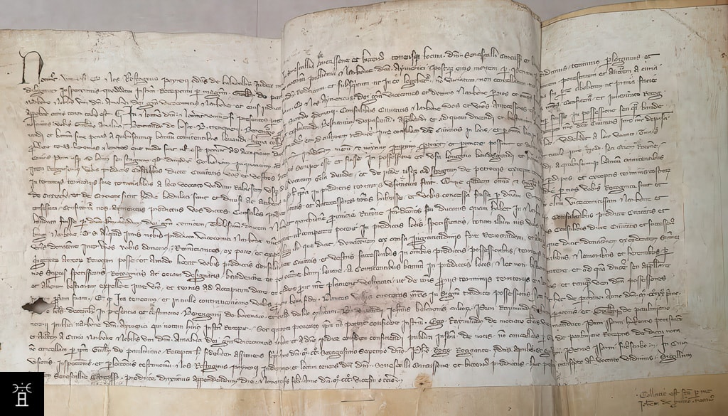 | Classification | L'écriture est un exemple très maîtrisé de cursive gothique notariale du XIIIe siècle (Littera Cursiva connue sous le nom de Gothic Cursiva). Ses caractéristiques sont typiques des écritures développées au sein des chancelleries et des études notariales pour répondre à un besoin croissant de production rapide et efficace de documents juridiques et administratifs. |