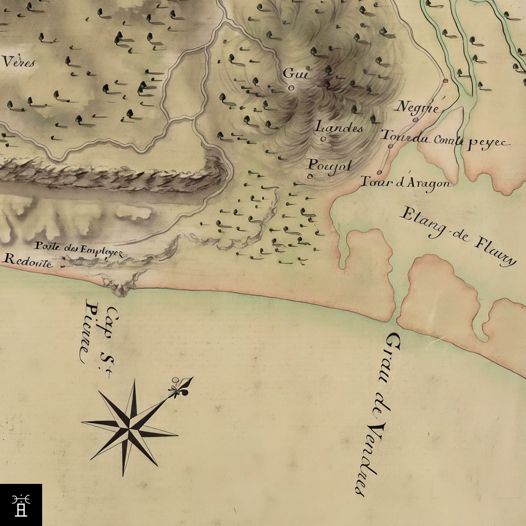 Pour définir la zone concernée, l'acte utilise une série de repères, dont le tout premier est “a loco vocato Turris comitis Petri(…)” (commençant au lieu-dit la Tour du Comte Pierre). Cette mention confère à l’édifice une fonction de borne juridique fondamentale, ancrant un droit dans un repère physique stable au sein d'un paysage littoral changeant.