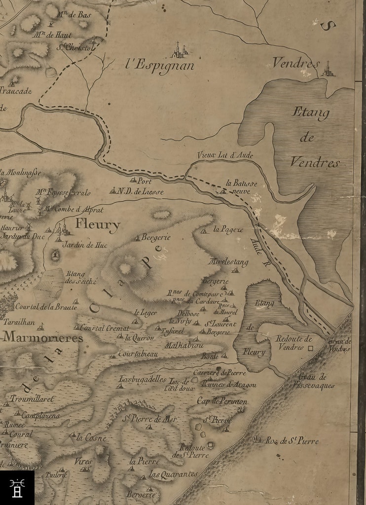 Il en résulte que, dès le début du XIIIe siècle, la physionomie générale du territoire connaît une évolution rapide sous l’effet des modifications du cours de l’Aude. Cette dynamique explique la mention, dans l’acte de 1221, de la Gola Daude, dont l’un des bras débouchait alors dans la ria de Vendres, attestant l’état déjà avancé de la reconfiguration hydrographique.