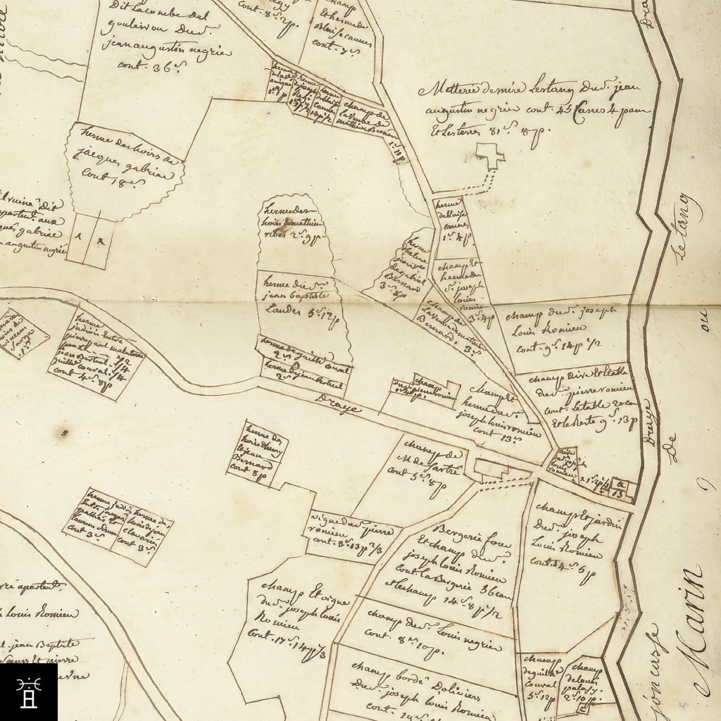 | Cadastre actuel | Sert de base de superposition pour confronter les limites de propriété médiévales et modernes et la reconnaissance des surfaces avec les indices topographiques. |