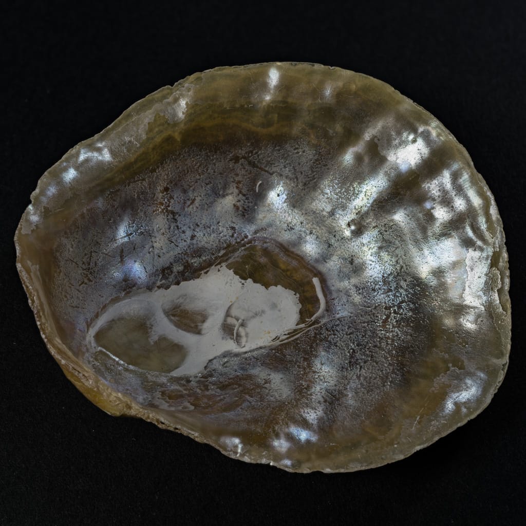 Coquillage très nacré reconnaissable à sa valve inférieure comportant un trou rond.