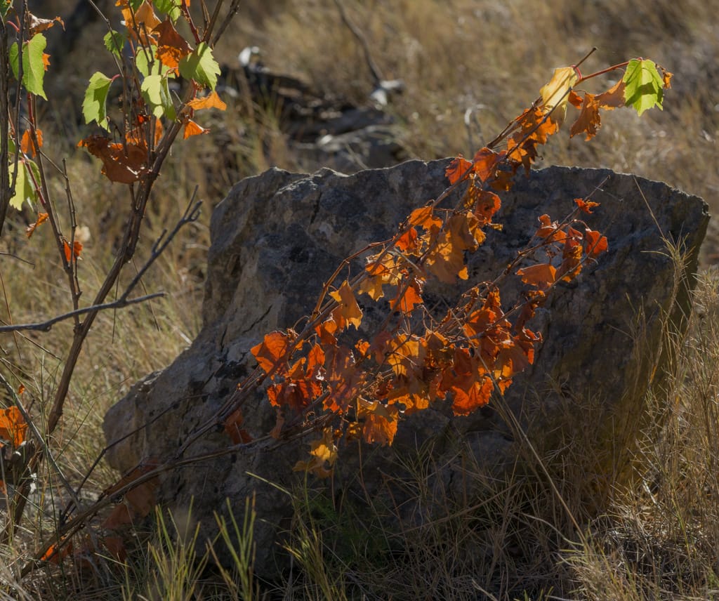 On peut aussi croiser des plants devenus sauvages de vignes, traces de son exploitation antérieure.