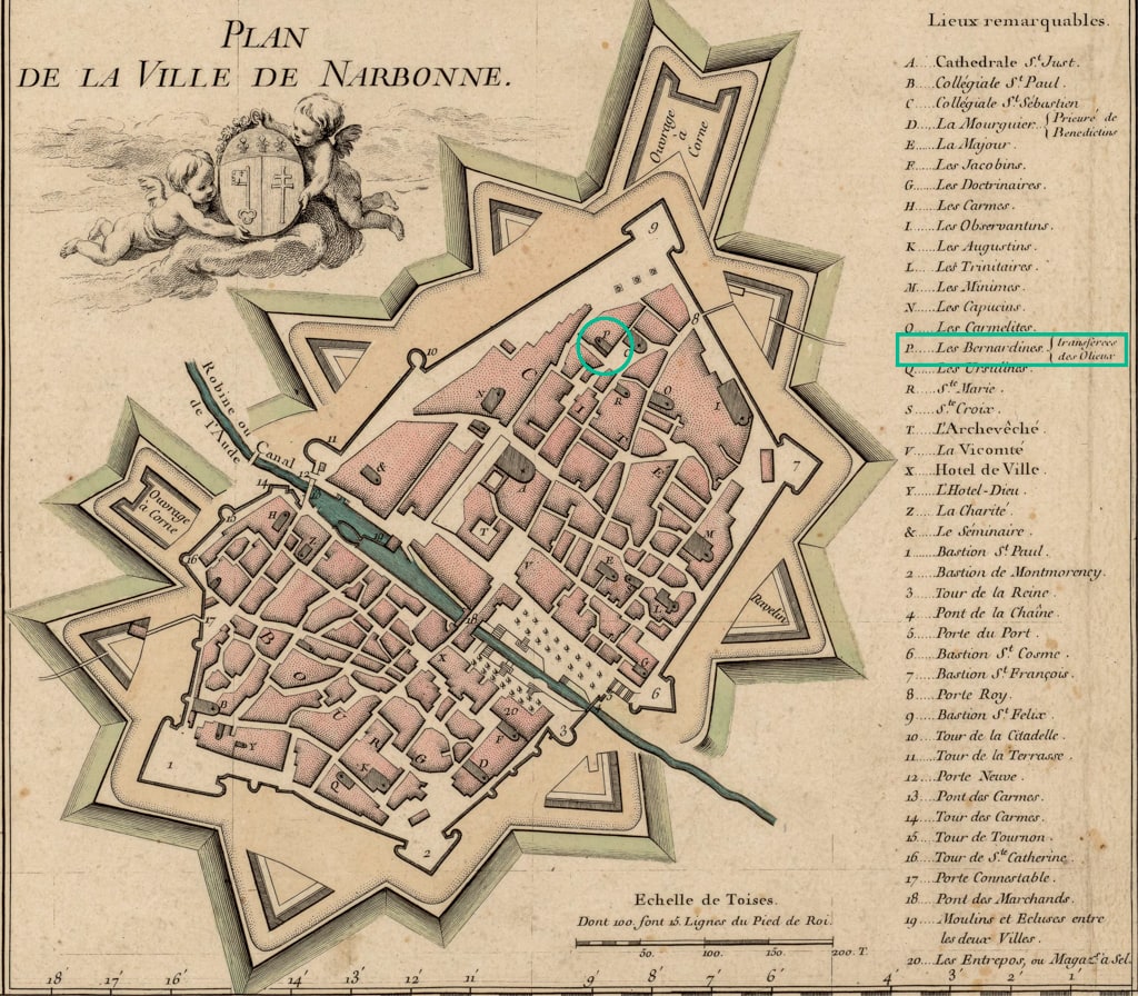 Les Dames religieuses de Saint Bernard: Extrait plan Varlet Barthes 1774-1784 © AC Narbonne